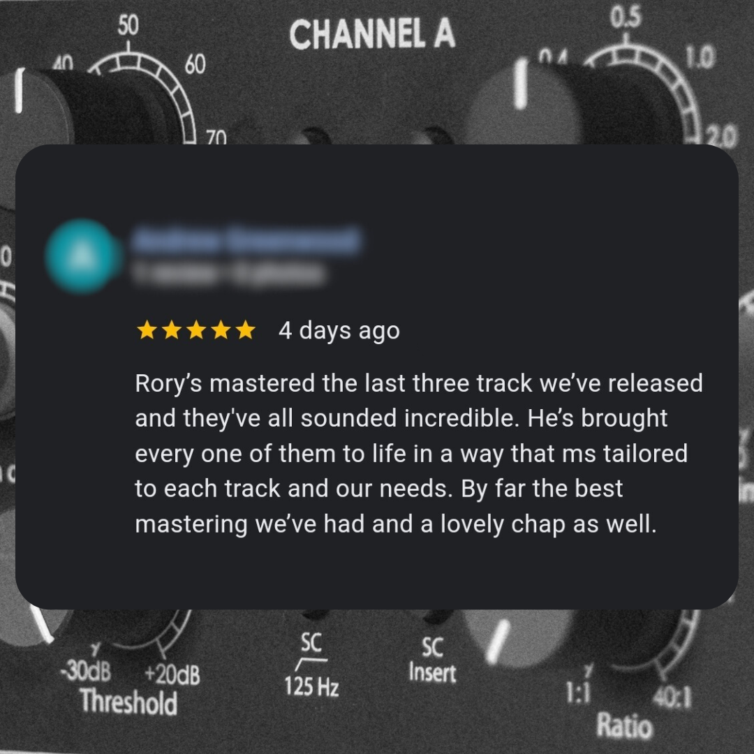 Having worked for years as a professional musician, and with a deep passion for independent, underground, experimental music, I know how important it is that your music gets heard in the way you intended. Whether you need a clear, transparent master, or something with a bit more colour and vibe, I aim to keep things honest and musical, and leave you with a finished project that’s ready to release.